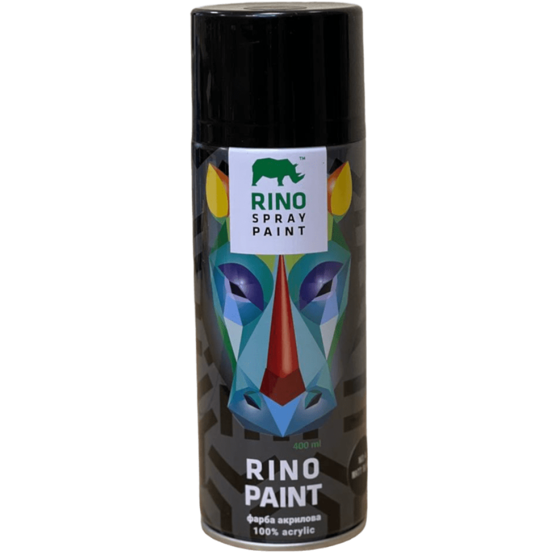 Rino Spray Paint UNIVERSAL – 100% акрилова аерозольна фарба. Висока адгезія до металевих, пластмасових, дерев'яних, бетонних та багатьох інших поверхонь. Можна використовувати в процесі декоративних та реставраційно-ремонтних робіт, підходить як для внутрішніх, так і для зовнішніх робіт. Атмосферостійка, стійка до стирання, не вигоряє і не тріскається, стійка до миючих засобів. Хороша покриваність, зручна у застосуванні, не залишає патьоків.