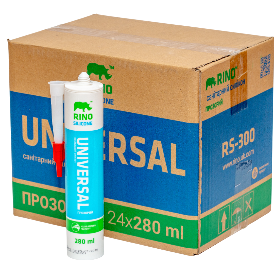 Опис Санітарний силіконовий герметик прозорий Rino (RS-300), 300 мл