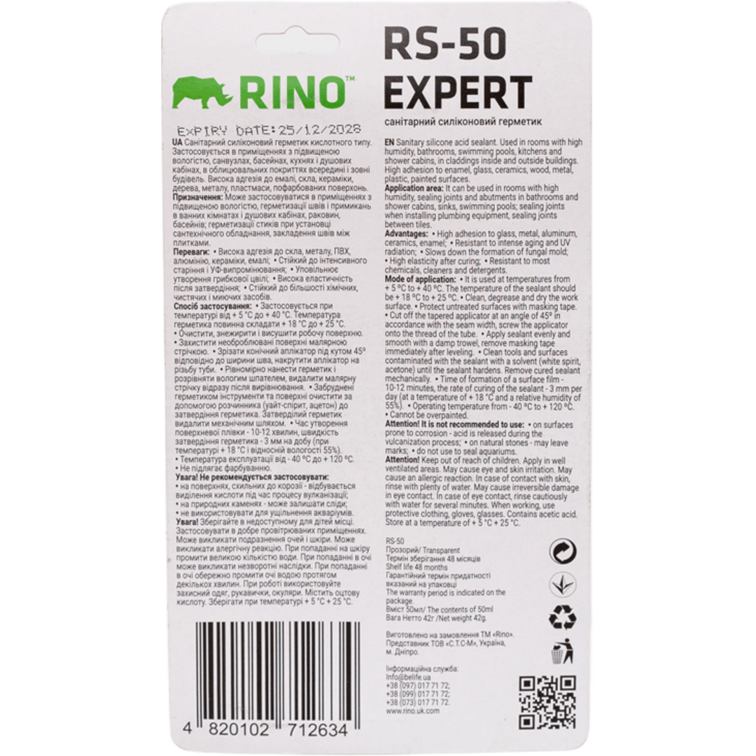 Основні характеристики Санітарний герметик силіконовий прозорий Rino EXPERT RS-50, 50 мл