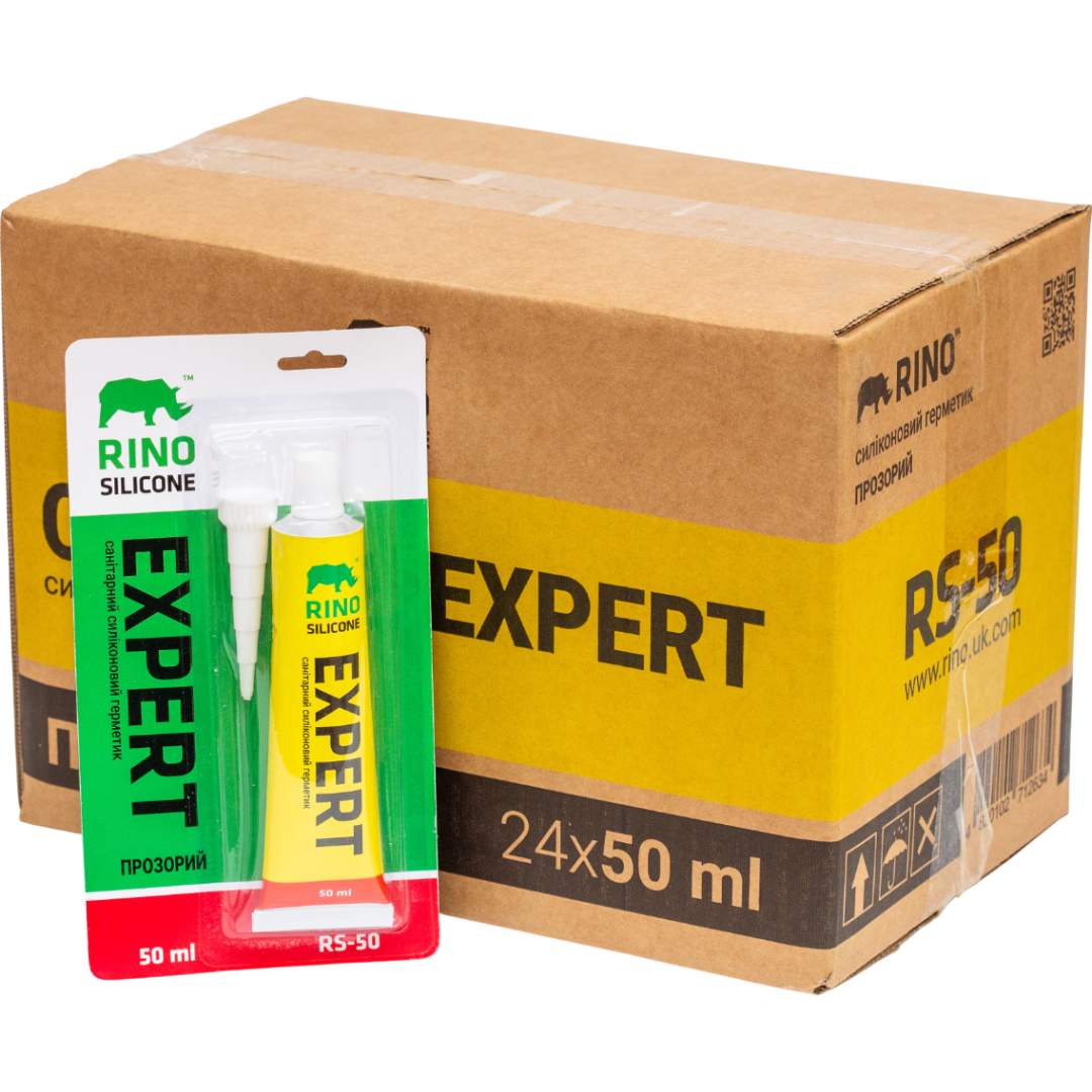 Опис Санітарний герметик силіконовий прозорий Rino EXPERT RS-50, 50 мл