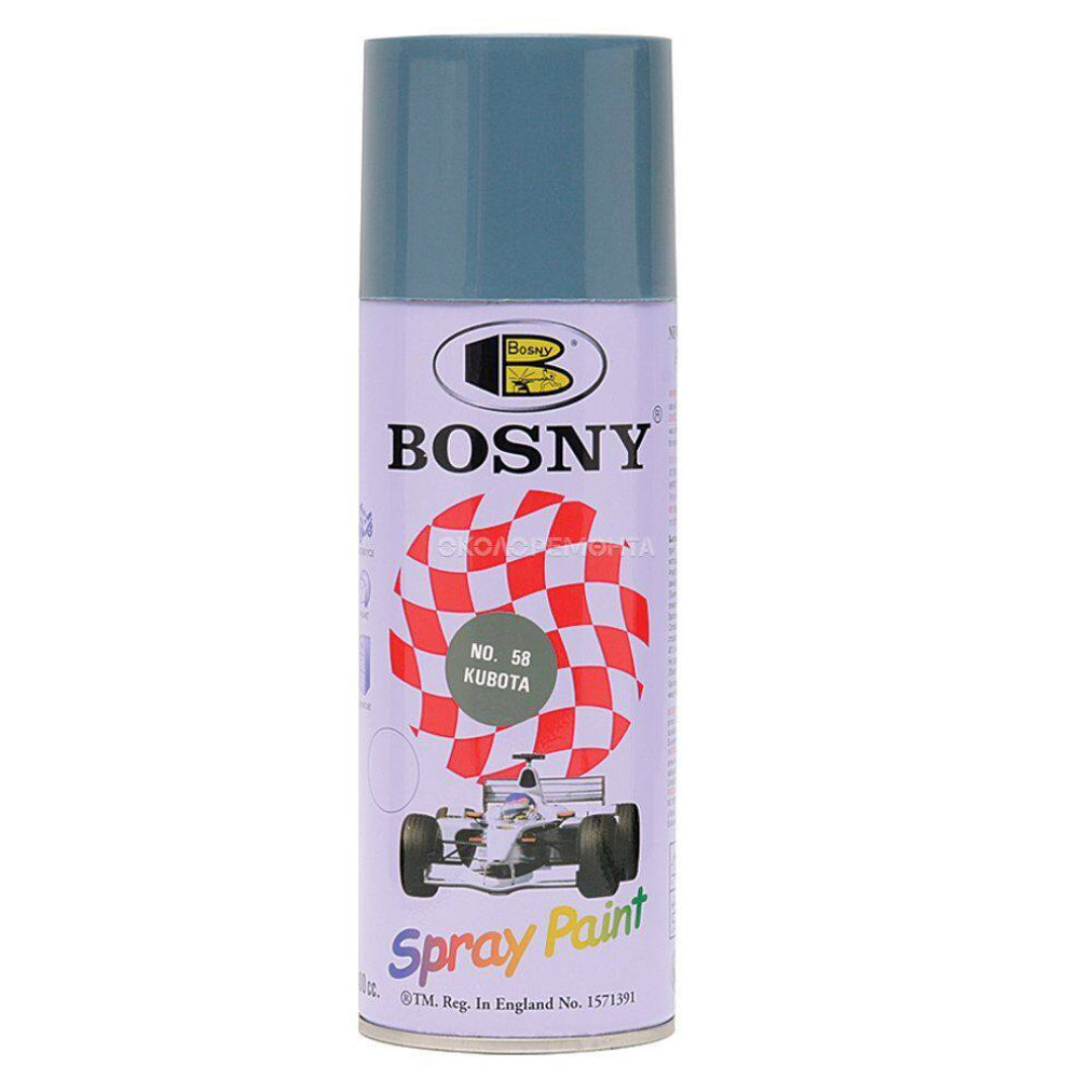 Акрилова спрей-фарба BOSNY для фарбування металевих, дерев'яних, керамічних поверхонь, ідеально лягає на всі види пластмас і пластиків, а також на тканини і скло. Підходить для автомобілів, мотоциклів, велосипедів, різного устаткування в тому числі кухонного, декоративних елементів, застосовується в побуті і т.п. Підходить для внутрішніх і зовнішніх робіт.