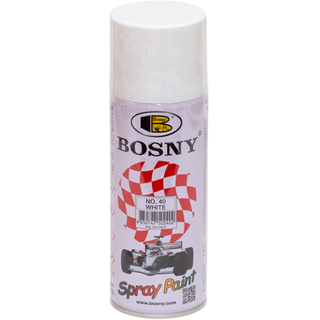 Основні характеристики Універсальна акрилова аерозольна емаль Bosny білий (40) RAL 9003