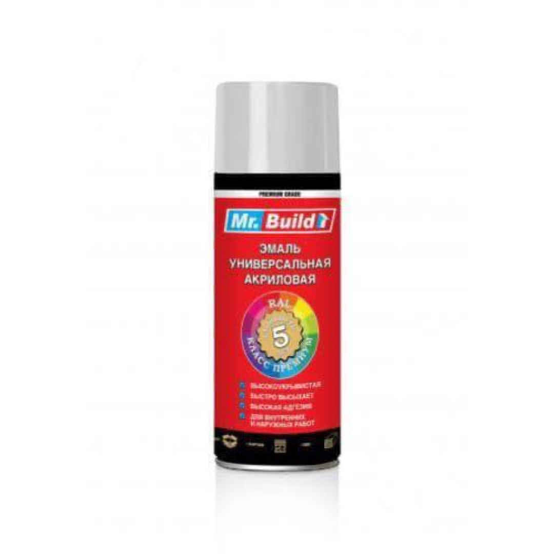Mr. Build - акрилова спрей емаль для фарбування металевих, дерев'яних, керамічних поверхонь, ідеально лягає на всі види пластмас та пластиків. Підходить для внутрішніх та зовнішніх робіт. Атмосферостійка. Не тече. Не вигоряє. Не жовтіє. Має яскравий колір.