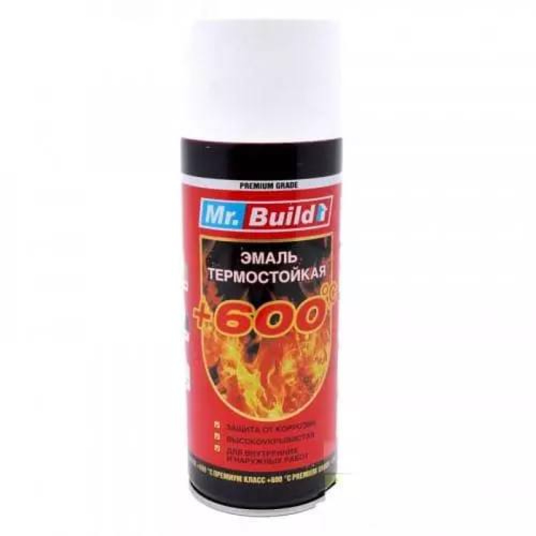 Mr.Build - високоякісна термостійка аерозольна фарба для захисно-декоративного фарбування металевих елементів, що піддаються тривалому або періодичному впливу високої температури від +400°C до +600°C. Захищає від іржі. Призначена для всіх внутрішніх та зовнішніх робіт. Підходить для фарбування: печей, бойлерів, камінів, димоходів, казанів, радіаторів, виробничого обладнання, супортів, двигунів, вихлопних труб та інших поверхонь.