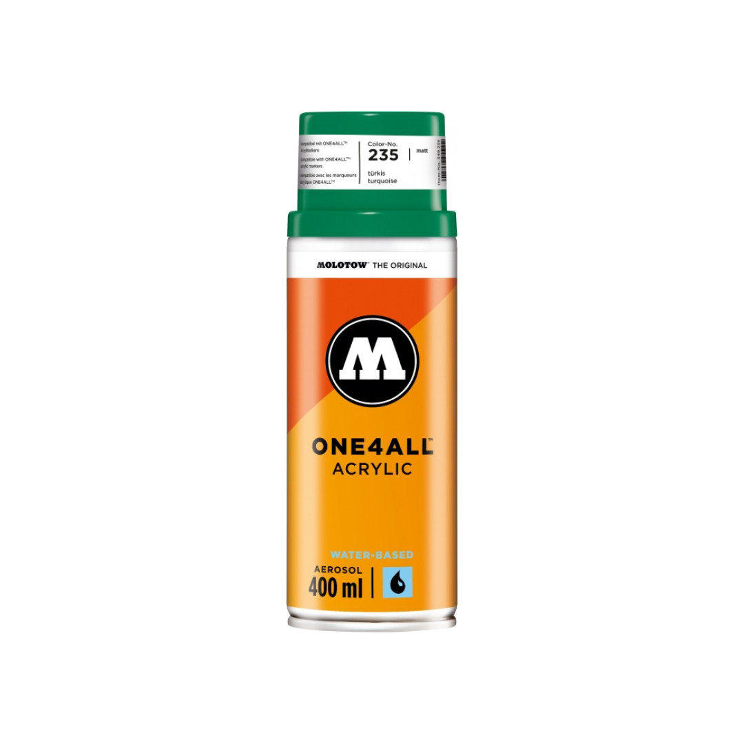 Molotow ONE4AL Acrylic – матова швидковисихаюча акрилова фарба на водній основі (85% вміст води), практично не має запаху. Висока стійкість до ультрафіолетового випромінювання. Можна фарбувати практично будь-яку поверхню. Для внутрішнього та зовнішнього застосування.
