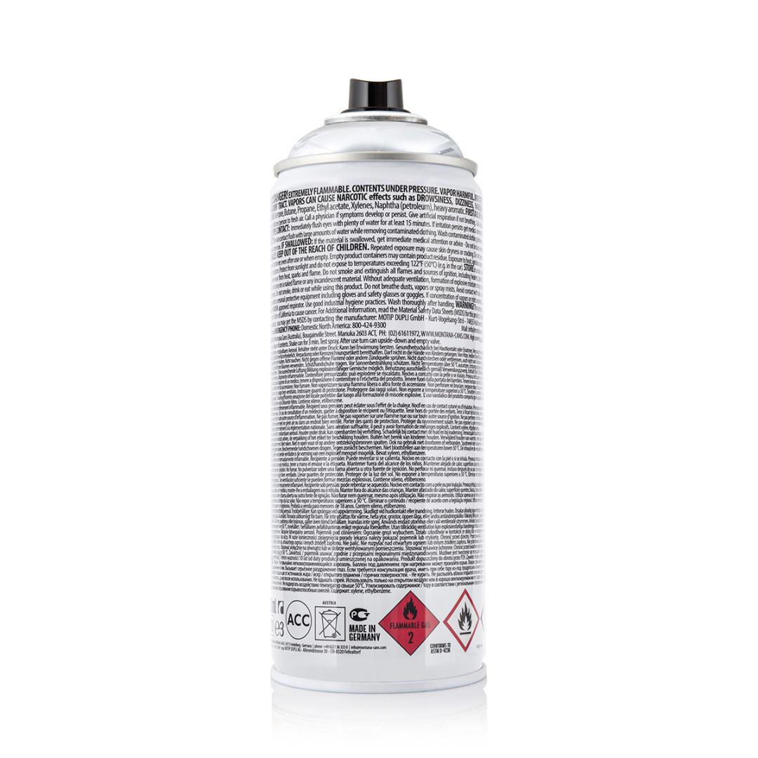 Montana WHT Silverchrome - хромовий (дзеркальний) ефект досягаються завдяки частинкам металевих пігментів, які розташовуються під час розпилення на поверхню. Менш стійка до погодних умов та абразивного впливу. Крім того, на поверхні, пофарбованій фарбою з ефектом хрому, можуть бути відбитки пальців. Наступне покриття лаком Montana захистить забарвлену поверхню, але може зменшити глянсовий блиск фарби, оскільки в цьому випадку пігменти відбиватимуть світло менш ефективно.