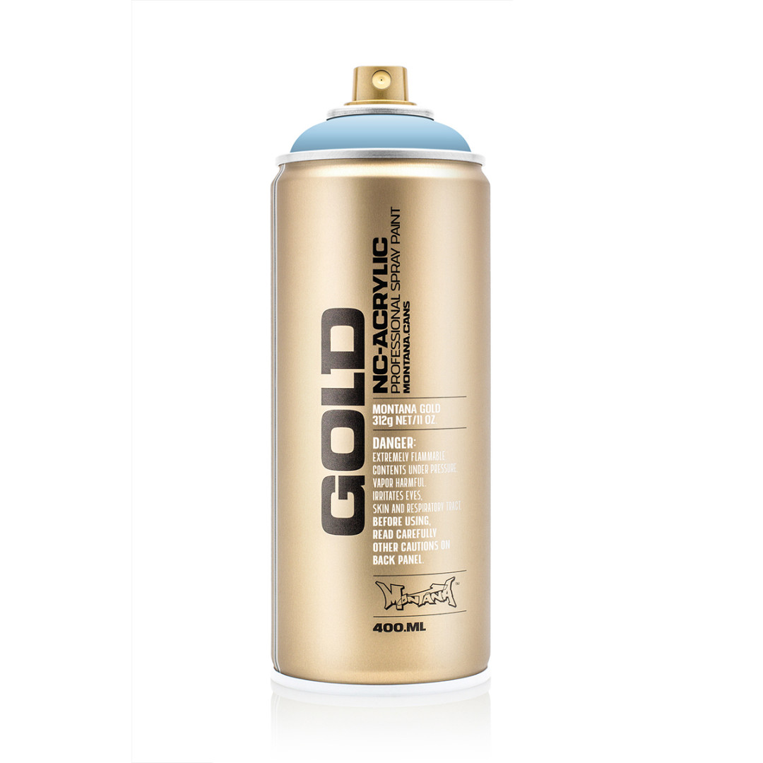 Montana GOLD – акрилова основа, легко наноситься на будь-які типи поверхонь (дерево, бетон, скло та метали), у тому числі і на гнучкі – полотно, синтетичні матеріали та інші. Система низького тиску гарантує максимальну точність. Ширина розпилення від 0,4 до 25 см, рекомендується використовувати систему Level Cap 1-6. Не тріскається і не вицвітає. Палітра складається з 250 кольорів, де: 193 напівматові акрилові кольори (G), 2 металеві (M), 22 шокуючі кольори (SH), 18 класичні кольори (CL), 8 флуоресцентні кольори (F) та 7 прозорі кольори транспоренти (T).