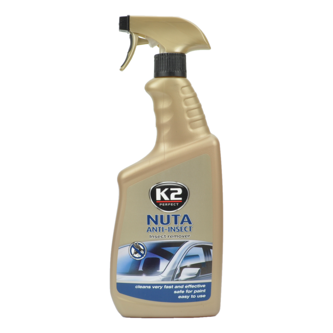 Очисник скла антимошка з розпилювачем Nuta Anti-insect K2 ─ прибирає різні види забруднень (сліди нікотину, бруд і пил) з вінілових, скляних, пластмасових поверхонь з нержавіючої сталі, кузова, хромованих елементів. Є незамінним засобом для очищення слідів комах. З легкістю видаляє навіть застарілі забруднення. Не залишає розводів, а сформований захисний шар з наночасток, що входять до складу, перешкоджають утворенню вологи на склі і повторного осіданню пилу. Продукт також має гідрофобні характеристики, відмінно зберігаючи бездоганну видимість через скло під час дощу.