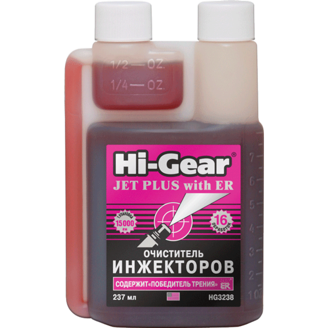 Очисник інжектора з ER Hi-Gear ─ бореться за чистоту паливної конструкції і інжектора, містить антифрикційний склад ER (металевий кондиціонер синтетичного виробництва), що продовжує термін експлуатації двигуна. Продукт полегшує старт двигуна, прибирає відкладення вуглецю, тим самим підвищуючи потужність мотора навіть після заливки бензину відповідає вимогам якості. Безпека для каталітичних нейтралізаторів. Очищує паливну систему і інжектори від вуглецевих відкладень. Забезпечує легкий старт.