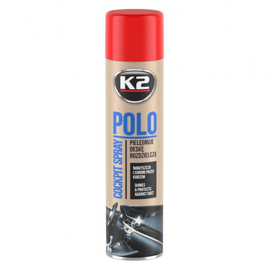 Поліроль торпеди Polo Cockpit K2 - м'яко очищає, надає блиск будь-якій поверхні из пластика, вінілу, каучуку та гуми незалежно від їх кольору та структури. Наночастинки проникають у структуру матеріалу, щоб відновити його первинний колір і блиск. Дають довготривалий захист від нової появи бруду та пилу. Рекомендується для догляду за панеллю приладів, пластмасою, гумою, а також меблями, незалежно від кольору. Унікальна композиція делікатних ароматів залишає у салоні автомобіля приємне почуття свіжості. Поліроль утворює невидиму плівку, яка відштовхує пилку і грязюку, не дозволяє поверхні вигоряти від сонячних променів.