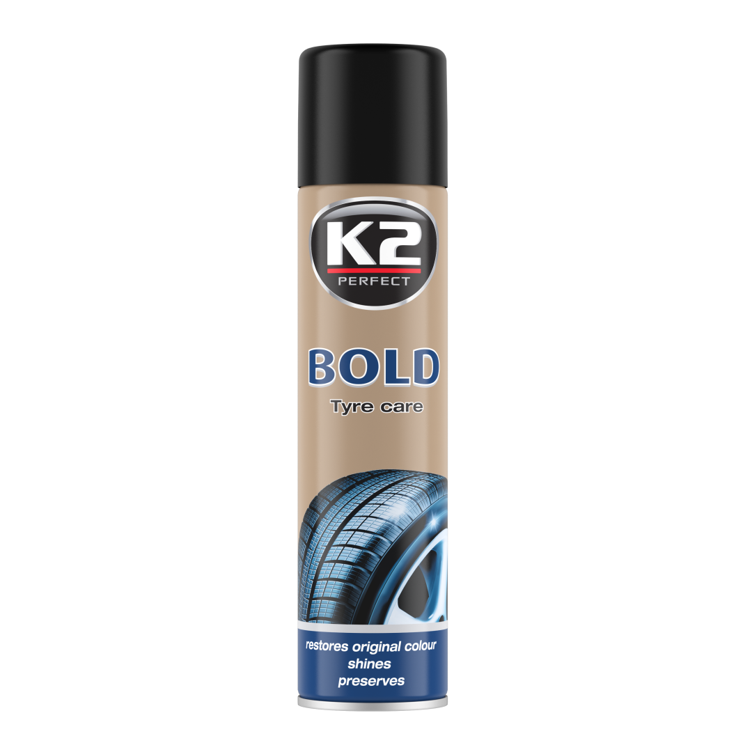 Поліроль для шин Bold аерозоль K2 ─ засіб, повертає привабливість шин і подовжує їх експлуатаційний період. Продукт включає в себе силіконові полімери, які надають глибину блиску і насиченості кольору оброблюваної поверхні. Не залишає потьоків і забезпечує тривалий захист від потьмяніння, матування і розтріскування. Володіє брудовідштовхувальними властивостями. Засіб має приємний запах. Допустимо застосування до різних типів шин.
