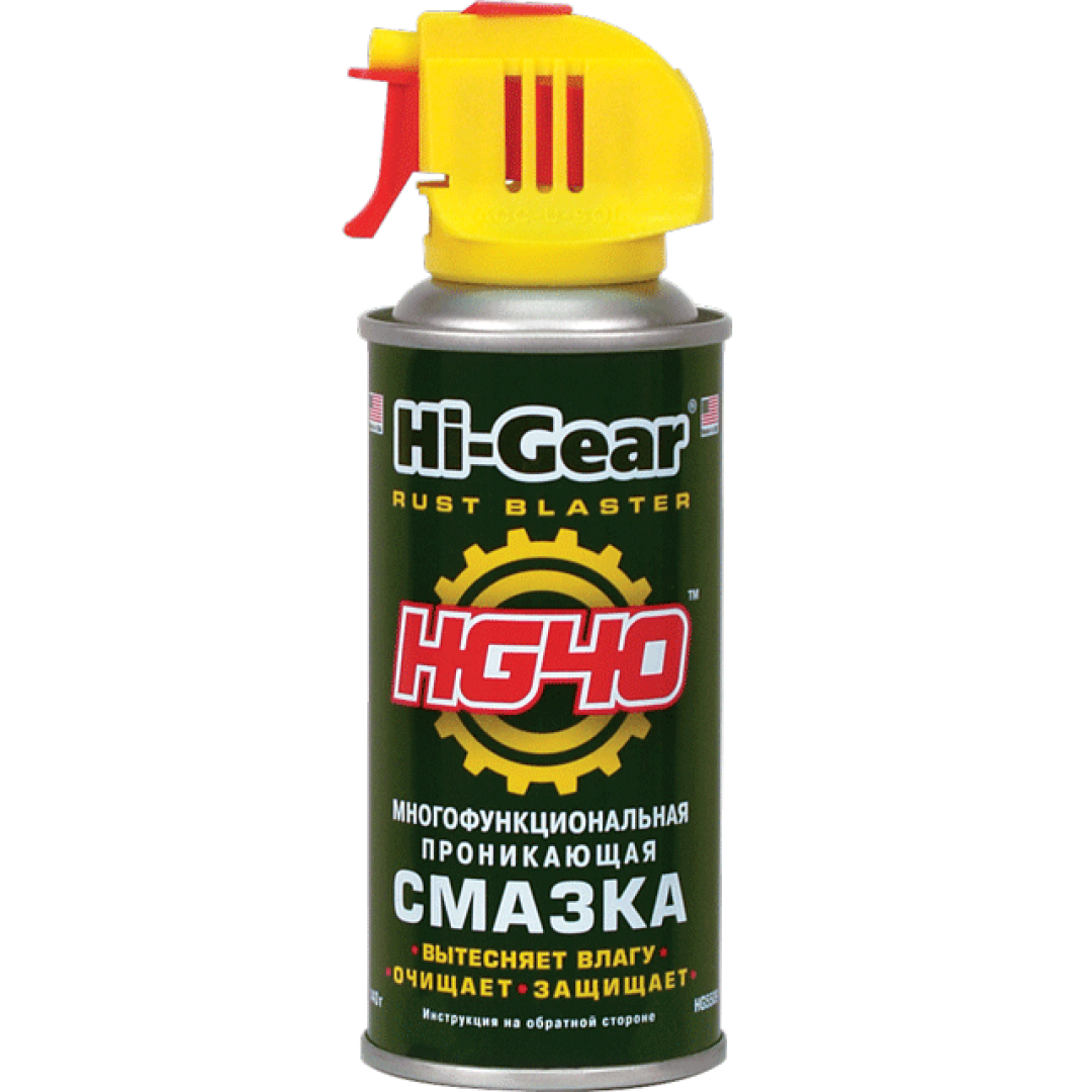 Мастило багатофункціональне проникаюче Hi-Gear ─ захищає від іржі і вологи, очищаючу, змазує і разъединяющее деталі, які заклинило або примерзло один до одного. Не шкодить елементів з різних матеріалів, включаючи пластик і дерево. Запобігає окисленню.