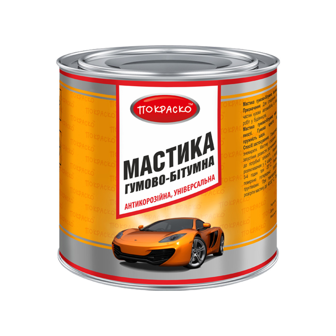 Мастика гумово-бітумна - на основі модифікованого бітуму з додаванням гумової крихти. Антикорозійна, універсальна призначена для створення антикорозійнго покриття частин кузова автомобілів, а також для гідроізоляційних робіт у будівництві. Мастика має еластичні та термостійкі властивості.