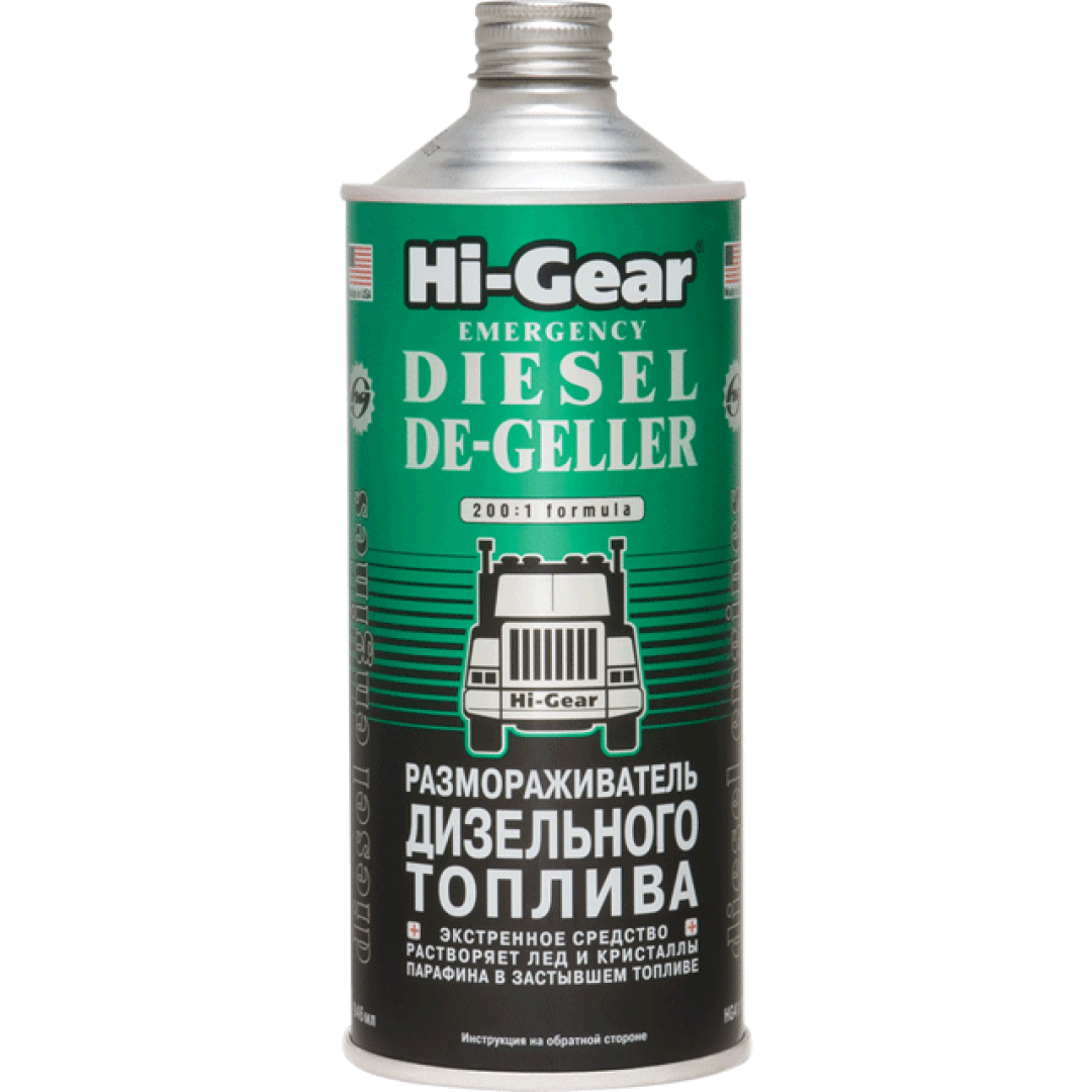 Розморожувач дизельного пального (1:200) Hi-Gear ─ розчиняє кристали парафіну і льоду в застиглому дизпаливі. Екстрена допомога в тому випадку, якщо антигель не може вирішити проблему. Якісно піднімає горіння палива і його протистояння низьких температур і початковий старт. Розчинення частинок парафіну і льоду. Покращення згорання палива. Стійкість суміші до низьких температур.