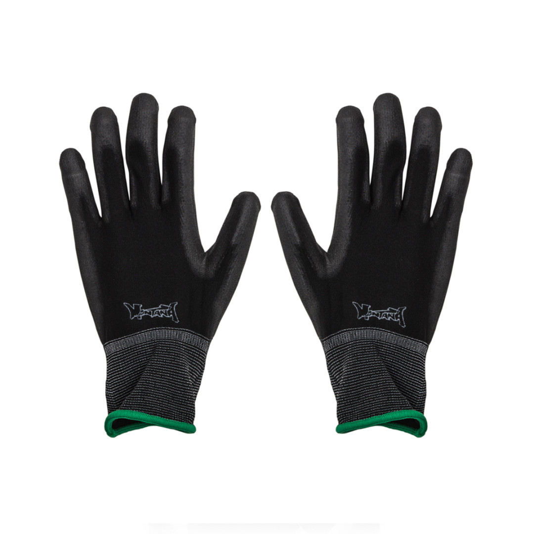 Нейлонові рукавички Montana NYLON GLOVES - ідеальні багаторазові захисні рукавички. Виготовлені з антрацитового нейлону з поліуретановим покриттям. На тильній стороні надруковано логотип Montana. Завдяки спеціальному покриттю, рукавички мають краще зчеплення і мають грязевідштовхувальні властивості. Доступні в чотирьох розмірах: Small (чорна підкладка), Medium (зелена підкладка), Large (синя підкладка) та Extra Large (червона підкладка).