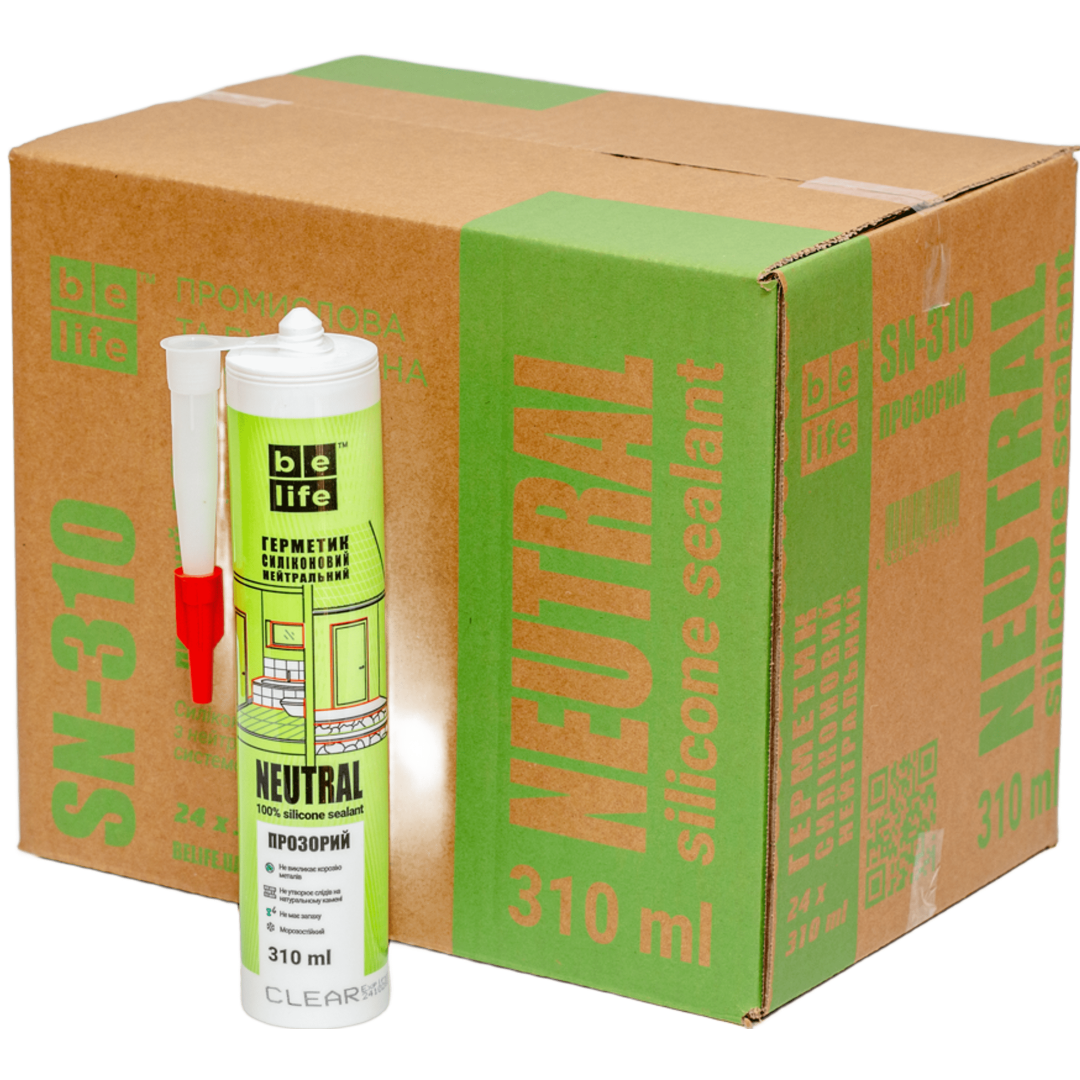 Основні характеристики Нейтральний силіконовий герметик прозорий BeLife (SN-310), 310 мл