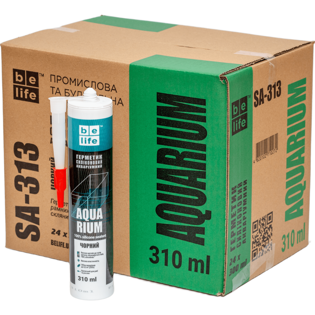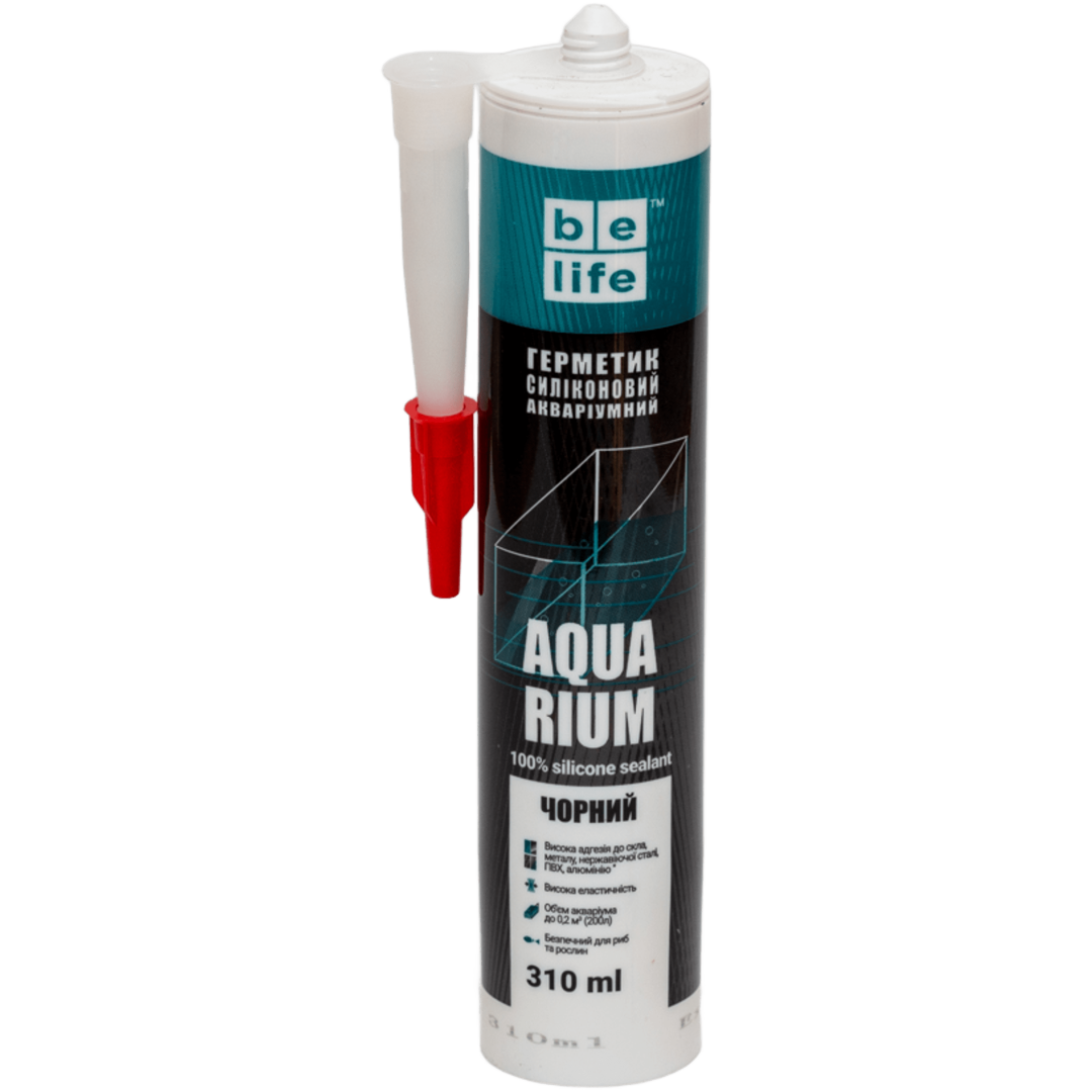 BeLife Aqua Silicone (Акваріумний) - еластичний високоякісний однокомпонентний силіконовий герметик. Розроблений для виконання робіт із збирання та герметизації акваріумів, тераріумів і інших скляних конструкцій. Не токсичний для акваріумних риб і рослин. Відмінна адгезія до скла, кераміки, алюмінію, дереву, ПВХ, пластмасі. Стійкий до УФ випромінюванню, більшості хімічних, чистячих та миючих засобів. Висока еластичність після затвердження. Морозостійкість -70°С до + 180°С. Для акваріумів, для приміщень з підвищенною вологістю, для герметизації санвузлів, басейнів, для швів та примикань в ванних кімнатах та душових кабінах, для систем кондиціонування повітря, для кухонних раковин та стільниць з різних матеріалів, для гідроізоляції поверхонь, для швів між плитками.