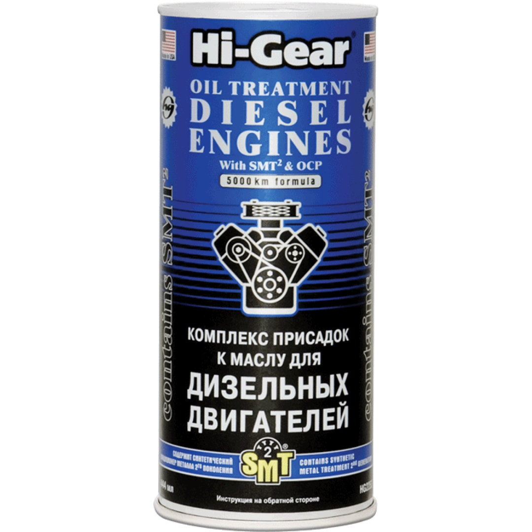 Комплекс суперприсадок до масла для дизельних двигунів з SMT2 Hi-Gear - забезпечує збалансоване посилення і відновлення службових властивостей масел, що працюють в дизельних двигунах. Містить синтетичний кондиціонер металу другого покоління SMT2, істотно зменшує втрати на тертя та інтенсивність зношування деталей двигуна. Відновлює і покращує миючі, антипінні, протизадирні і протизносні характеристики моторного масла. Зменшує нагароутворення, витрата і окислення масла. Покращує пуск і прийомистість двигуна і динаміку автомобіля.