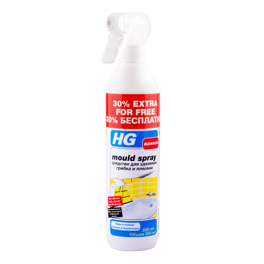 Засіб для видалення грибка та плісняви HG не потребує тертя, для швів між плиткою, силіконових з’єднань тощо. Для очищення облицювальної плитки та мармуру, цементної підлоги у ванній та душових кімнатах, туалеті, на кухні, у комірчині, підвалі, сауні, басейні, гаражі, повітці, для чищення фасадів, балконів, горщиків для квітів з різних матеріалів, крім дерева. Для видалення грибка та плісняви виводить сірі та чорні плями, викликані грибковим ураженням та зелені плями від водоростей.