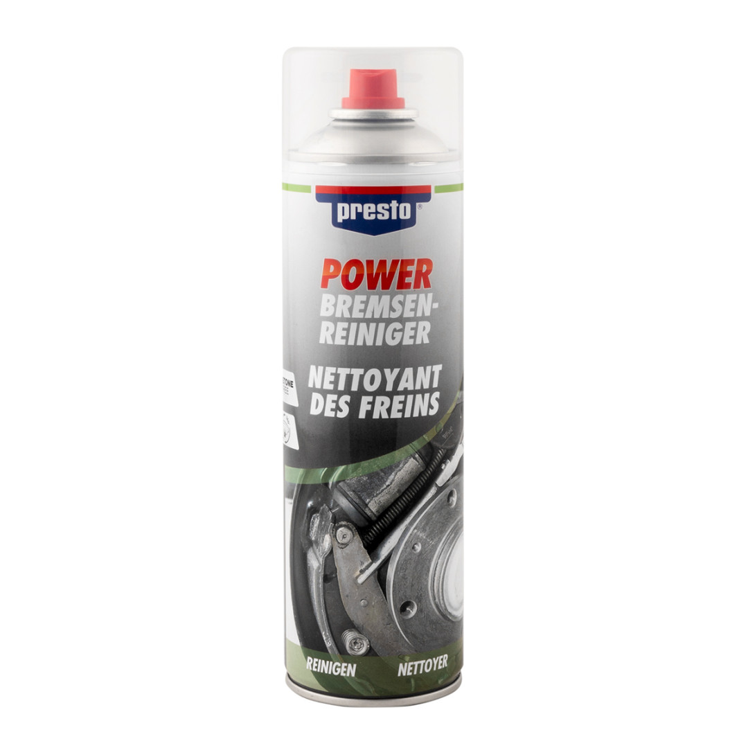 Очищувач гальмівних механізмів PRESTO - для швидкого видалення масла, жиру, бруду, гальмівної рідини з гальмівних барабанів, колодок, дисків, циліндрів і деталей зчеплення. Видаляє навіть кислоти. Видаляє нафтопродукти, мастило, гальмівну рідину, смолу та бруд з деталей. Безпечний для гальмівних шлангів та ущільнювальних кілець. Захищає від корозії та не виробляє електрику.