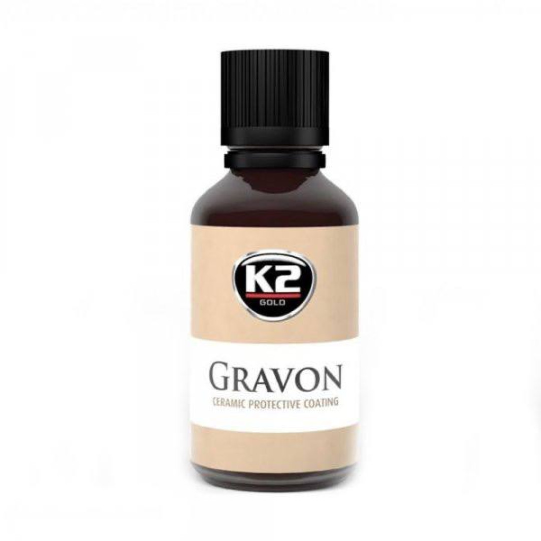 Керамічне покриття K2 Gravon Refill – захист фарби та інших поверхонь. На фарбі утворюється прозорий та невидимий шар завтовшки до 2-3 мікрон. Захищає поверхню від подряпин, бруду, УФ-променів, солі, пташиного посліду, атмосферних опадів та деревного соку, залишків комах, корозії та механічних пошкоджень, спричинених, наприклад, камінням, що потрапляє на кузов, від дефектів, що зменшують блиск та зменшують подряпин. Завдяки керамічному покриттю не потрібно наносити автомобіль воском. Спосіб зняти покриття – відполірувати його машинним способом. Можна наносити не тільки на фарбу, а й на гуму, пластик, метал та скло.