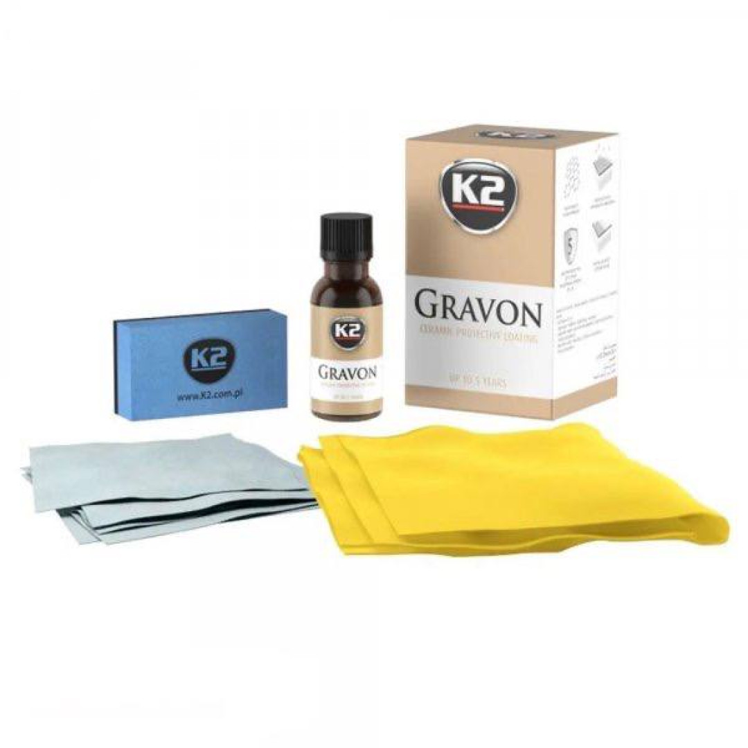 K2 Gravon Lite – для нанесення керамічне покриття, яке захистить фарбу від подряпин, бруду, УФ-промені та інших зовнішніх факторів. Покриття можна наносити шарами, підвищуючи захист з кожним шаром до 2 років. Керамічне покриття є чудовою альтернативою автомобільним воскам, а завдяки чудовим брудовідштовхувальним властивостям можна скоротити частоту миття.
