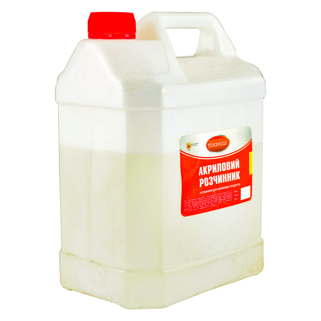 Акриловий розчинник Покраско призначений для розведення фарб, емалей, ґрунтовок та шпаклівок, що виготовляються на акриловій основі. Особливість цієї продукції наступне — до складу не входять прекурсори.