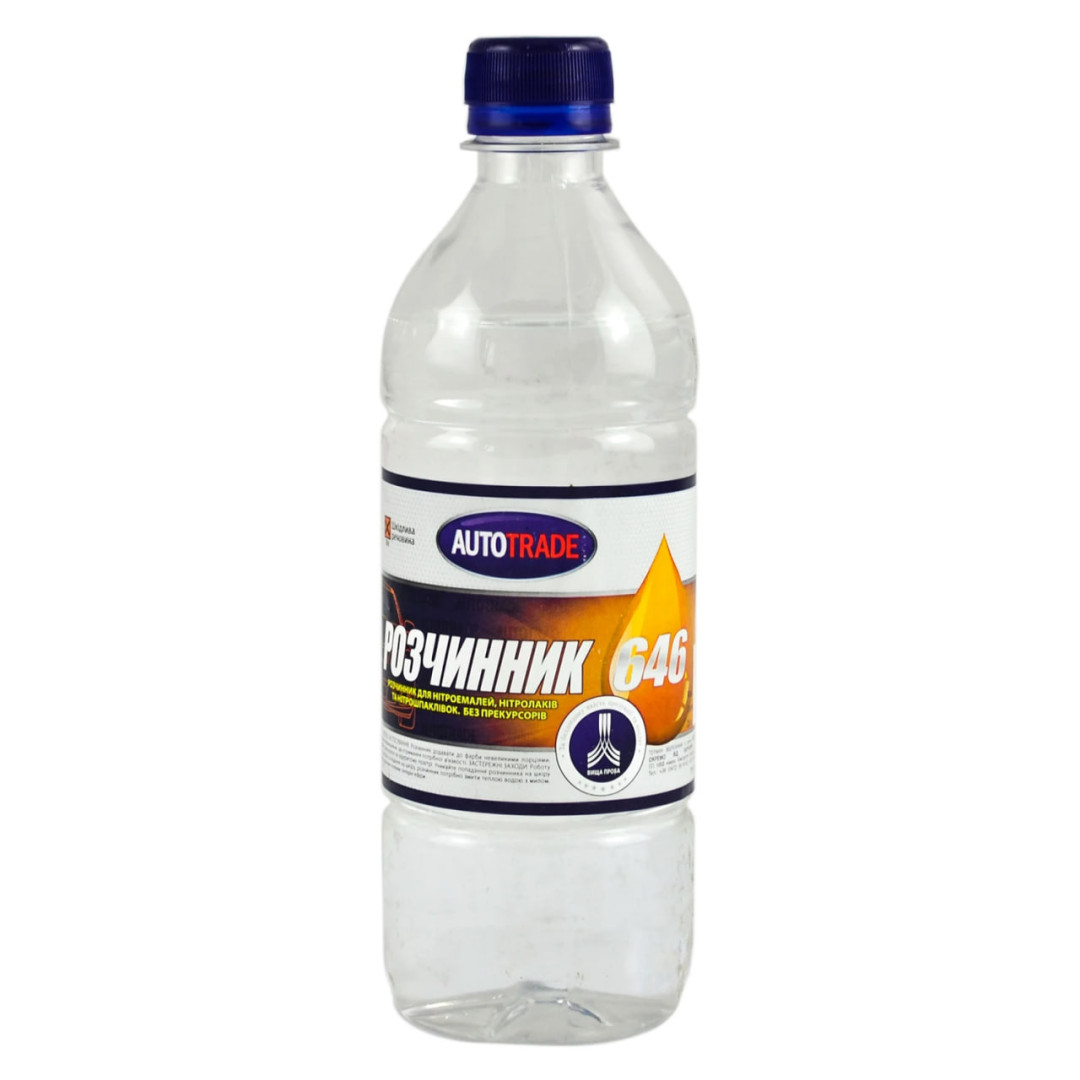 Розчинник Autotrade 646 без прекурсорів – багатокомпонентна суміш, до складу якої входять такі продукти нафтопереробки – ацетон, ароматичні вуглеводні, спирти, ефіри. За класифікацією застосування 646 є універсальним розчинником, хоча його основним призначенням є розведення лакофарбової продукції, створеної на нітроцелюлозній основі.