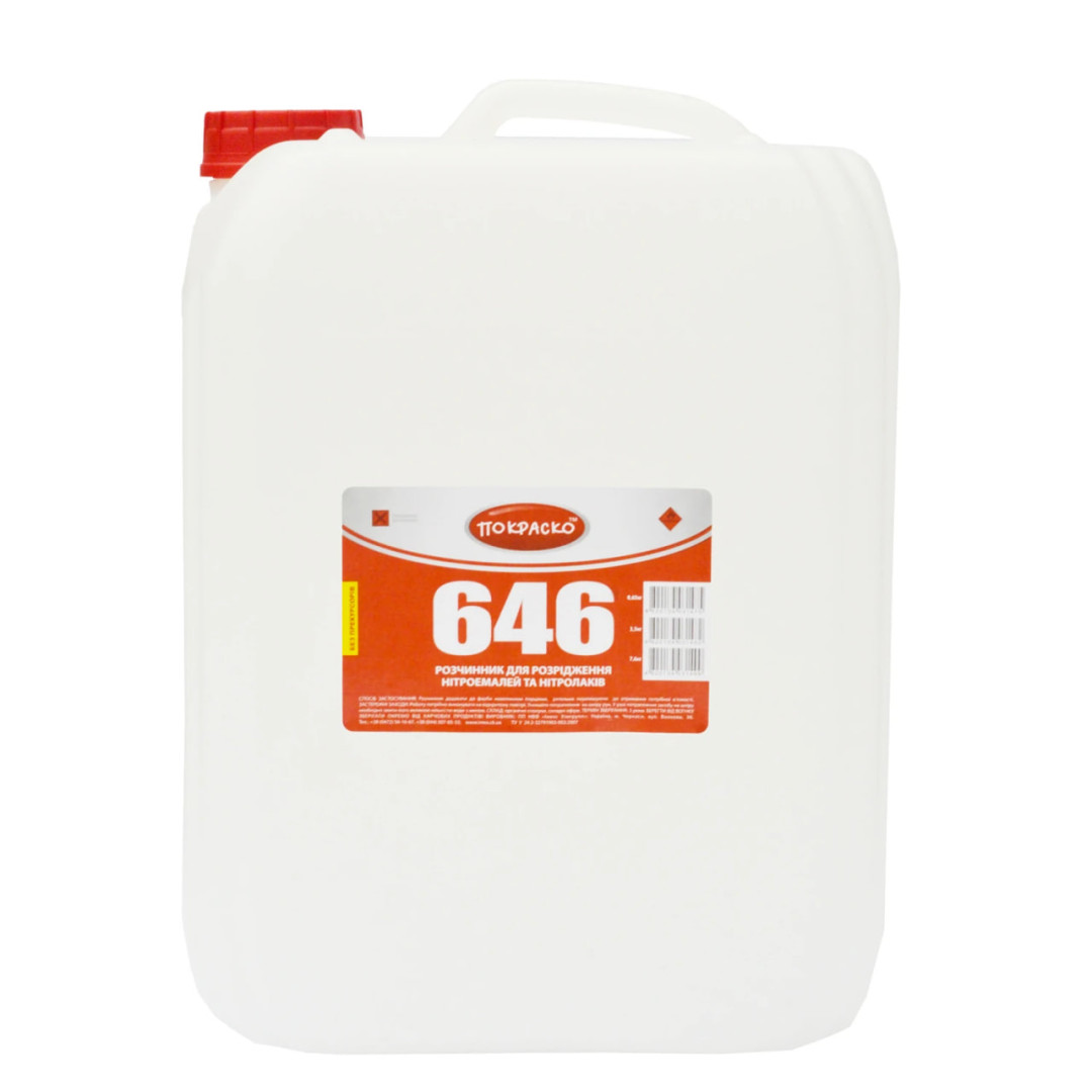 Розчинник Покраско 646 без прекурсорів – багатокомпонентна суміш, до складу якої входять такі продукти нафтопереробки – ацетон, ароматичні вуглеводні, спирти, ефіри. За класифікацією застосування 646 є універсальним розчинником, хоча його основним призначенням є розведення лакофарбової продукції, створеної на нітроцелюлозній основі.