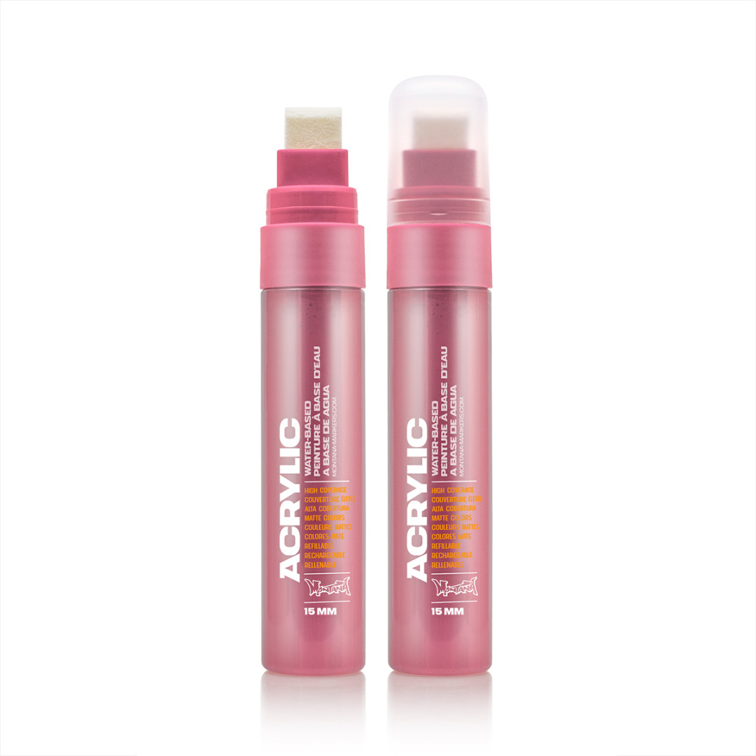 Маркер Montana Acrylic - маркер з акриловою фарбою на водній основі з прямокутним пером 15 мм. Застосовується на твердих (метал, пластик, бетон, скло) і поглинаючих (полотно, папір, тканина, дерево) поверхнях. Прозорі корпуси маркерів дозволяють легко оцінити залишковий вміст маркера. Наконечники для заміни доступні окремо. Для внутрішніх робіт. Водна основа не токсична і не має запаху. Заправлений фарбою Montana Acrylic Paint. Акрилові фарби різних кольорів можна змішувати між собою всередині маркера.