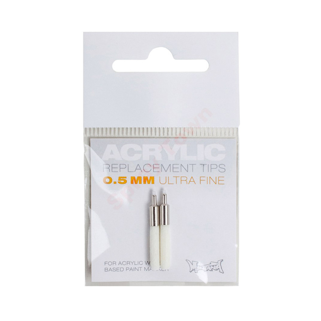 Montana Acrylic Ultra Fine 0.5 мм - набір запасного круглого пір'я для маркерів Montana Acrylic 0.7 мм. Наконечник виготовлений із повсті, металу та синтетичного матеріалу.