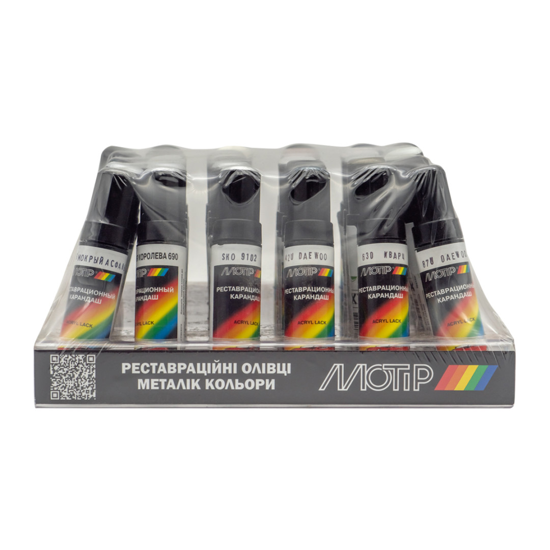 Олівець MOTIP - високоякісна акрилова смола, яка швидко полімеризуються, сохне «на відлип» протягом 5-10 хвилин при t 15 - 25 ° С. Олівці для підфарбовування MOTIP - це спеціальний засіб для швидкого усунення глибоких подряпин і відновлення лакофарбового покриття на автомобілі.