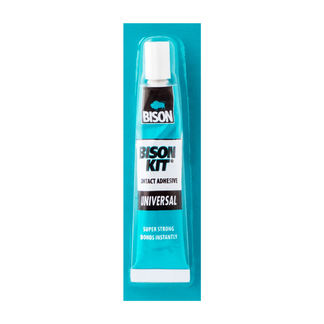 Універсальний контактний клей Bison для універсального застосування вдома, в офісі, для моделювання, в школі, для ремесел тощо. Швидко та міцно склеює різні матеріали: деревину, матеріали на основі деревини, пластмаси (ABS, твердий і м'який ПВХ, оргскло, полістирол, Resopal®), метал, скло, фарфор, кераміка, шкіра, гума, повсть, пробка, тканини, картон, папір, багато пластиків та багато іншого. Не підходить для пінополістиролу (Styrofoam®), поліетилену (PE) та поліпропілену (PP). Після нанесення клей залишається придатним для регулювання і не утворює зморшок на папері. Рідкий. Прозорий. Швидко висихає. Придатний для регулювання. Не використовувати при температурі нижче +5 °C.