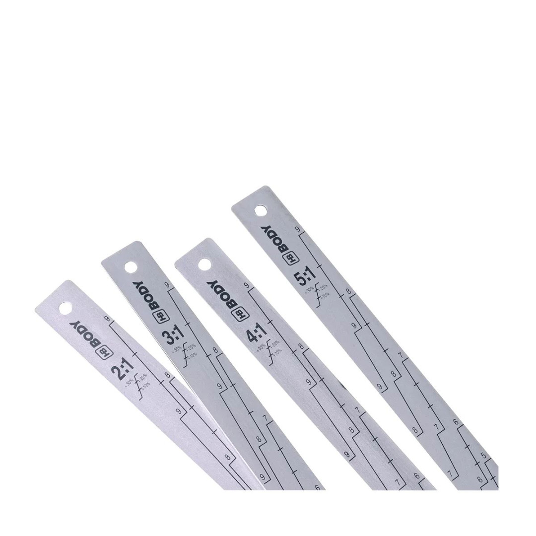 Лінійка для вимірювання співвідношення змішування (2:1 / 4:1) для всіх продуктів.