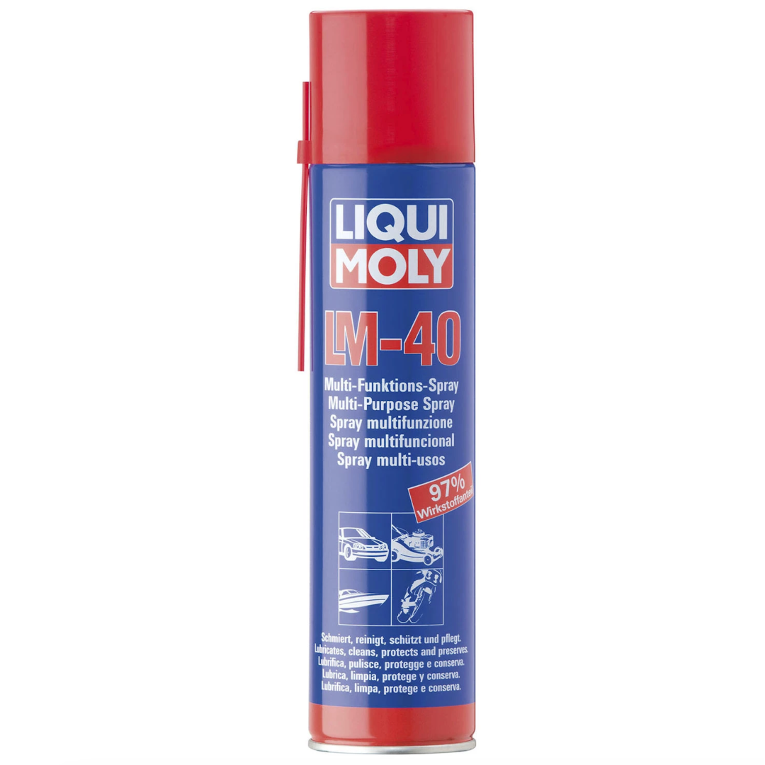 LIQUI MOLY LM 40 змащує, очищує, розчиняє, захищає та доглядає. Забезпечує надійне мастило поверхонь, що труться. Розчиняє міцний шар іржі на болтах та гвинтах за дуже короткий час. Очищає сильні олійні та жирові забруднення, відштовхуючи їх від поверхні. Захищає від іржі та корозії та забезпечує догляд за хромованими поверхнями. Знижує тертя та знос. Нейтральний до пластику, лаку, металу та дерева.