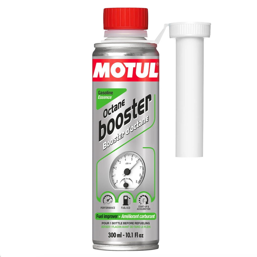 MOTUL Super Octane Booster Gasoline підвищувач октанового індексу бензинів, застосовується у всіх типах бензинових двигунів, з безпосереднім упорскуванням або непрямим, карбюраторних, атмосферних або з турбонаддувом, з каталітичним нейтралізатором або без нього, що працюють на всіх неетиловані, LPG. MOTUL OCTANE BOOSTER GASOLINE збільшує октановий індекс (RON – Research Octane Number) на 2 одиниці. У суміші з паливом засіб забезпечує: покращення повноти згоряння робочої суміші, запобігає детонації.