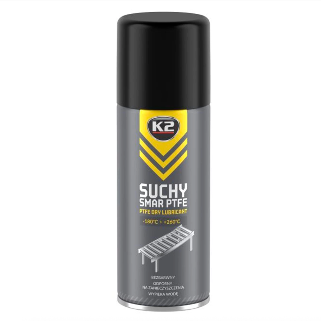 Сухе тефлонове мастило PTFE для використання в елементах із металу, пластику, кераміки та інших матеріалів (направляючих для воріт/дверей/сидінь, транспортувальних роликів, конвеєрних стрічок, віконних механізмів, меблевих петель, пластикових підшипників). Витісняє пил, воду та бруд. Захищає від корозії, вологи, води, олії, слабких кислот та лугів.