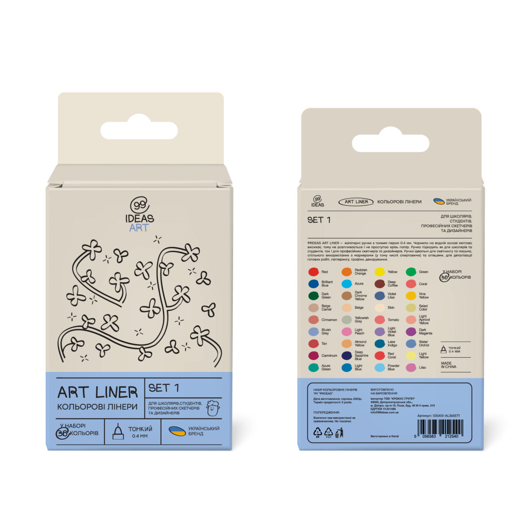 Набір кольорових лінерів 99IDEAS - капілярні ручки з тонким пером 0.4 мм. Чорнило на водній основі миттєво висихає, тому не розпливається і не проступає крізь папір. Ручки тривалий час не висихають без ковпачка.