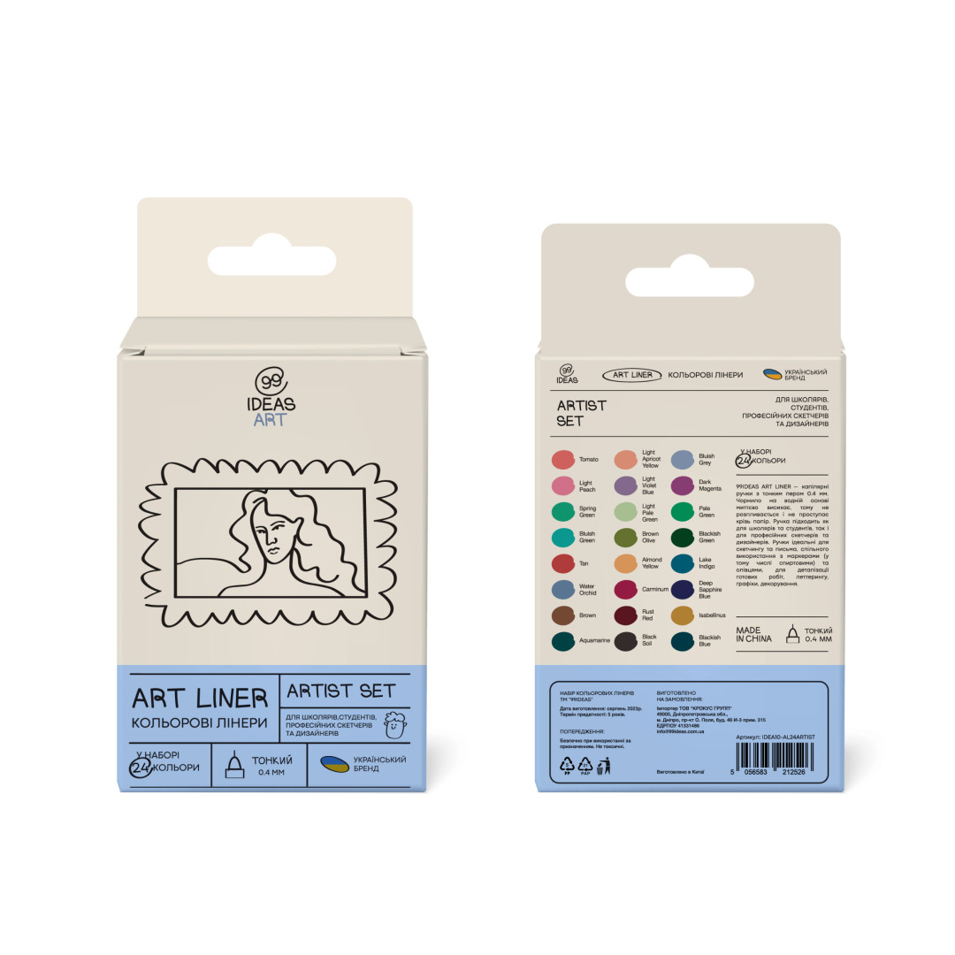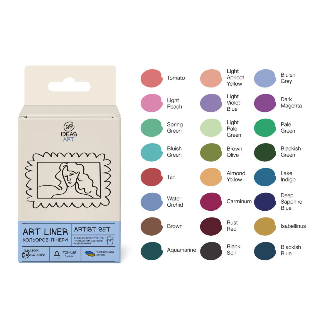 Набір кольорових лінерів 99IDEAS - капілярні ручки з тонким пером 0.4 мм. Чорнило на водній основі миттєво висихає, тому не розпливається і не проступає крізь папір. Ручки тривалий час не висихають без ковпачка.