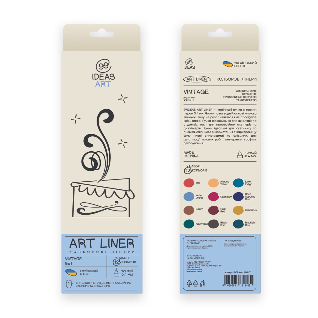 Набір кольорових лінерів 99IDEAS - капілярні ручки з тонким пером 0.4 мм. Чорнило на водній основі миттєво висихає, тому не розпливається і не проступає крізь папір. Ручки тривалий час не висихають без ковпачка.
