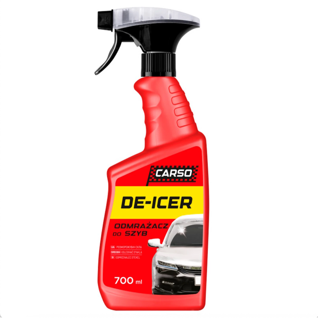 Розморожувач скла CARSO ─ засіб для розморожування скла, чинне навіть при дуже низьких температурах до -60°C. Звільняє скло від намерзшої вологи, при цьому не шкодить фарбі і гумовим ущільнювачам. Можливе використання для всіх автомобільних стекол, де немає автоматичного підігріву. Засіб застосовується і для розморожування фар.