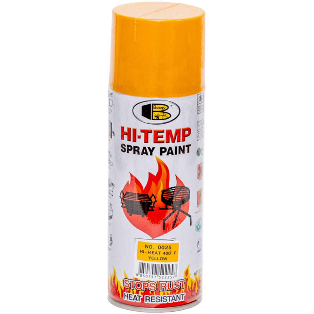 Описание Универсальная акриловая аэрозольная эмаль Bosny Hi-Temp желтая 205°C (0025)