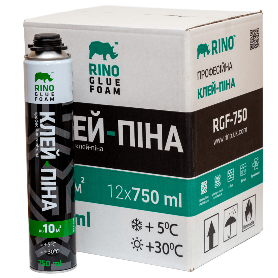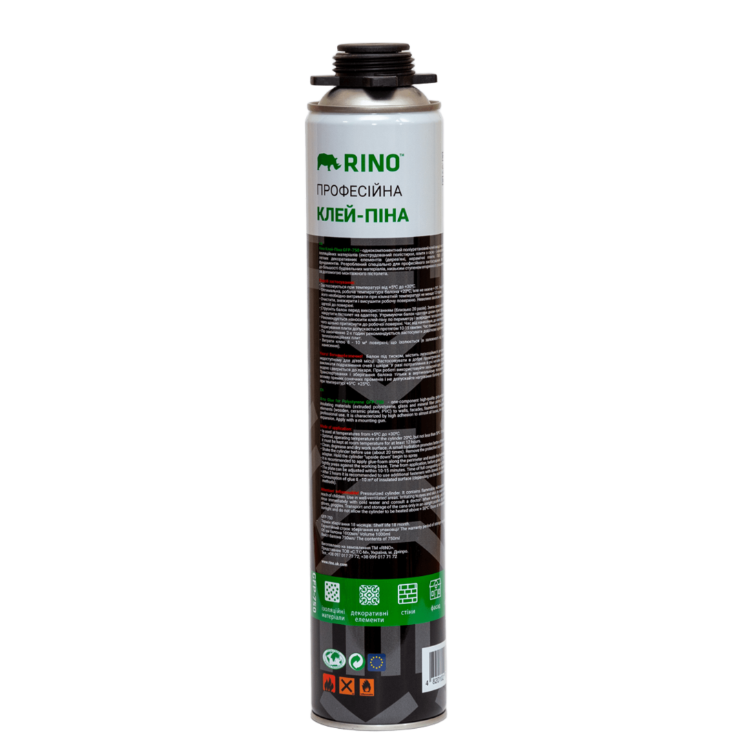 Rino Glue Foam однокомпонентный полиуретановый клей высшего качества. Отличная адгезия к большинству строительных материалов: дерево, бетон, камень, металлы и др. Стабильный, отсутствует вторичная усадка. Газ - вытеснитель, не содержит хлорфтору-углеводородов (фреон), абсолютно безвреден для озонового слоя. Рабочая температура +5°С до +30°С. Наноситься с помощью монтажного пистолета.