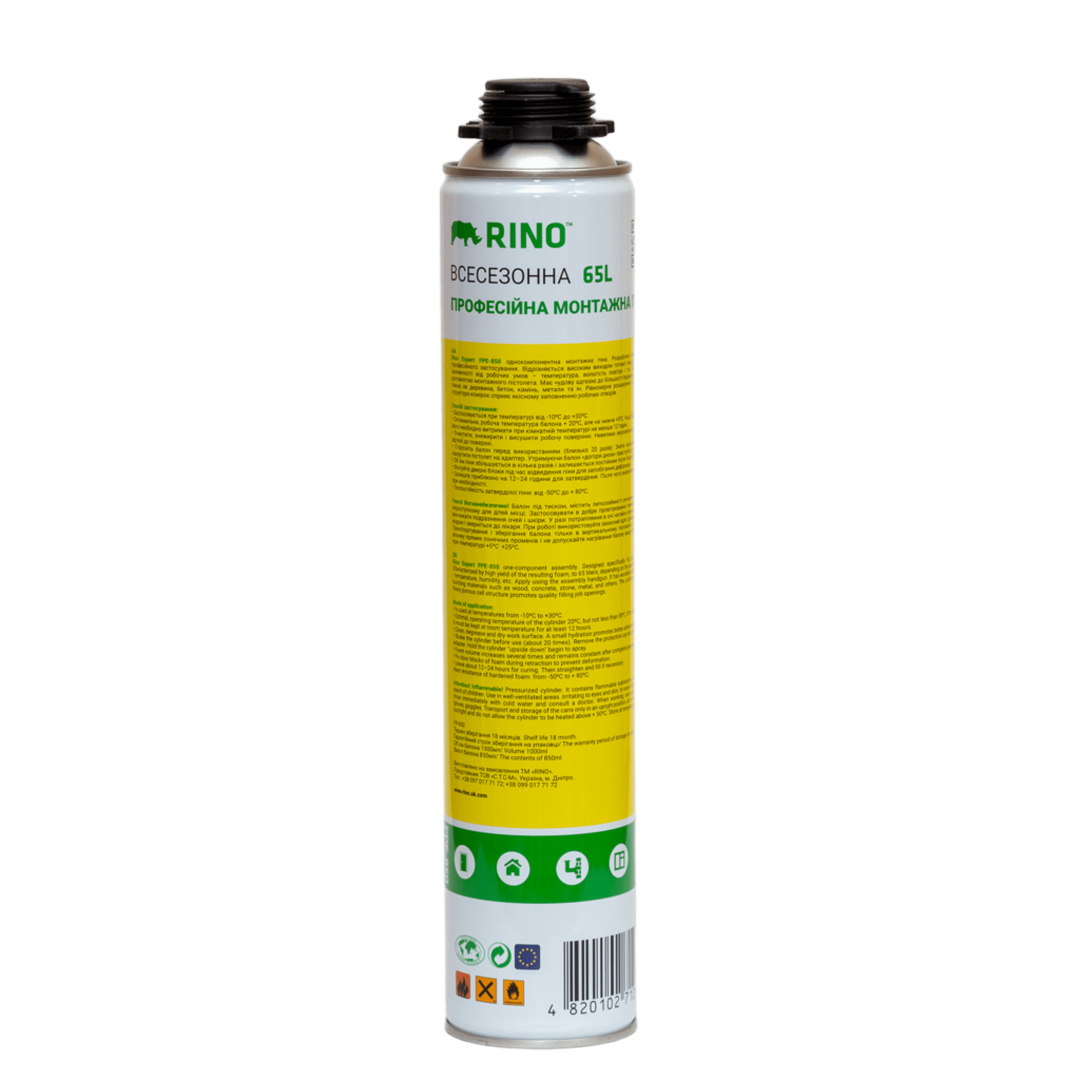 Rino Professional Expert FPE-850 однокомпонентная профессиональная монтажная пена высшего качества. Отличается высоким выходом готовой пене, до 65 литров, в зависимости от рабочих условий температуры, влажности воздуха и т.д. Отличная адгезию к большинству строительных материалов: дерево, бетон, камень, металлы и др. Равномерное расширение и мелкопористая структура ячеек способствует качественному заполнению рабочих отверстий. Газ - вытеснитель, который НЕ содержит хлорфтор-углеводородов (фреон), абсолютно безвредный для озонового слоя. Наносится с помощью монтажного пистолета. Морозостойкость -10°С до +30°С.