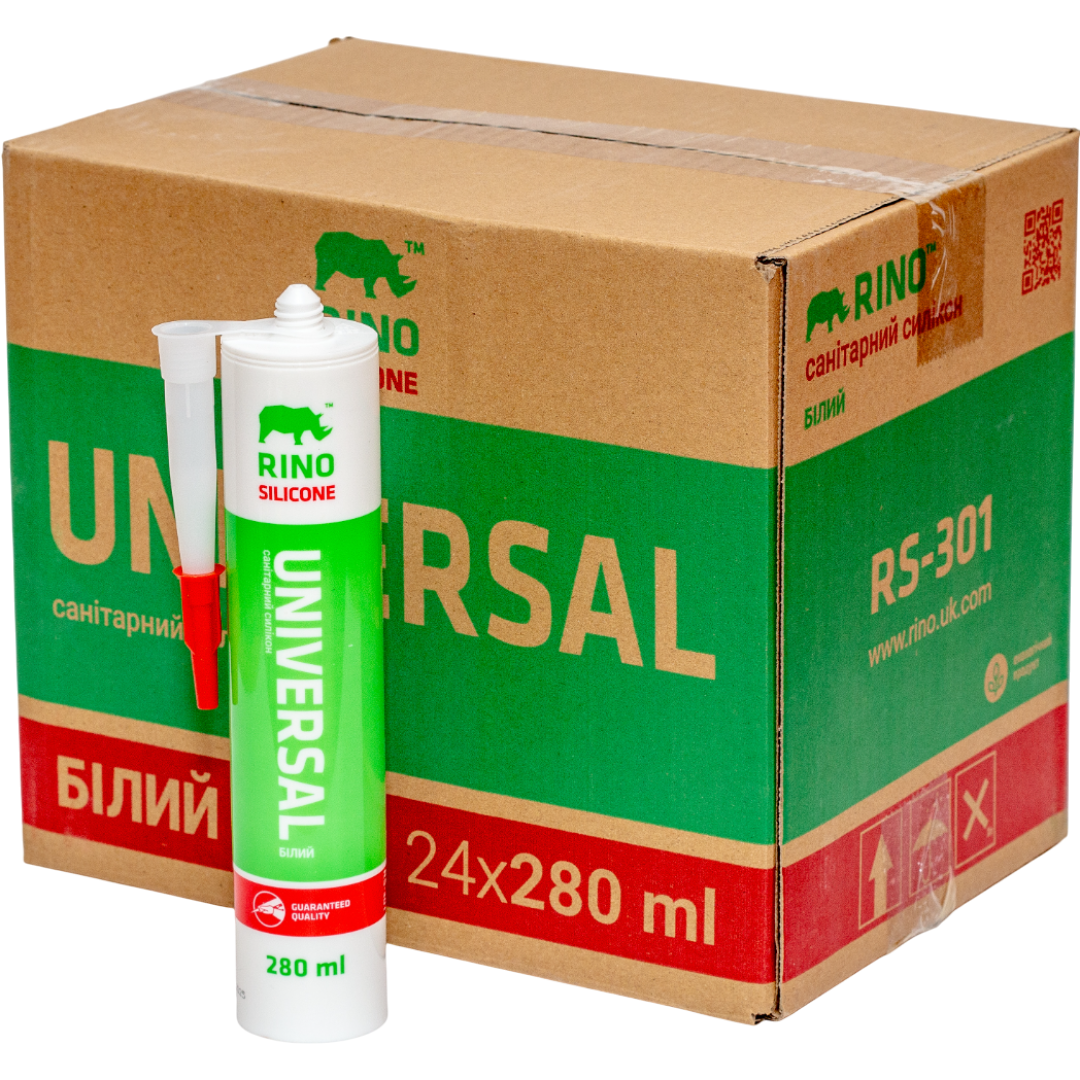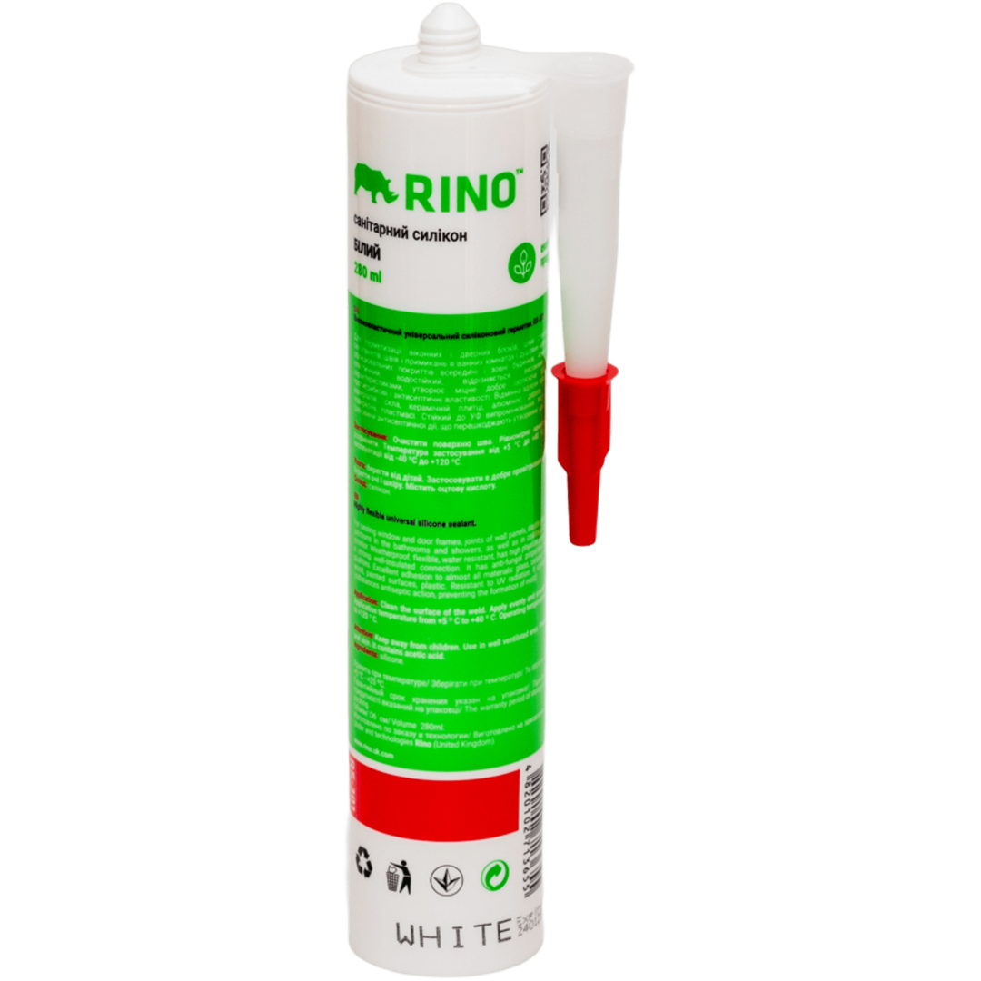 Основные характеристики Санитарный силиконовый герметик белый Rino (RS-301), 300 мл