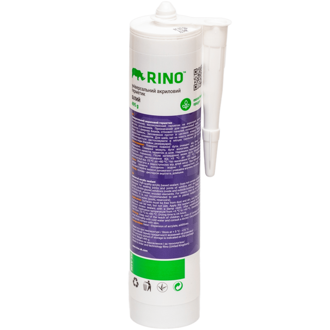 Акриловый герметик Rino RS-A496 - для заполнения щелей в штукатурке и кирпичной кладке, заделки дверных коробок и зазоров между различными материалами. Используется для наружных и внутренних работ. После нанесения высыхает в течение 24 часов благодаря испарению жидкости, которая входит в его состав. Герметизирующее средство из акрила обладает высокой прочностью и низкой теплопроводностью. Это обусловлено наличием в составе загустителей, наполнителей, антисептических добавок и пластификаторов. Стойкость к ультрафиолетовому излучению. Возможность реставрации шва. Не желтеет (в отличие от силиконового).