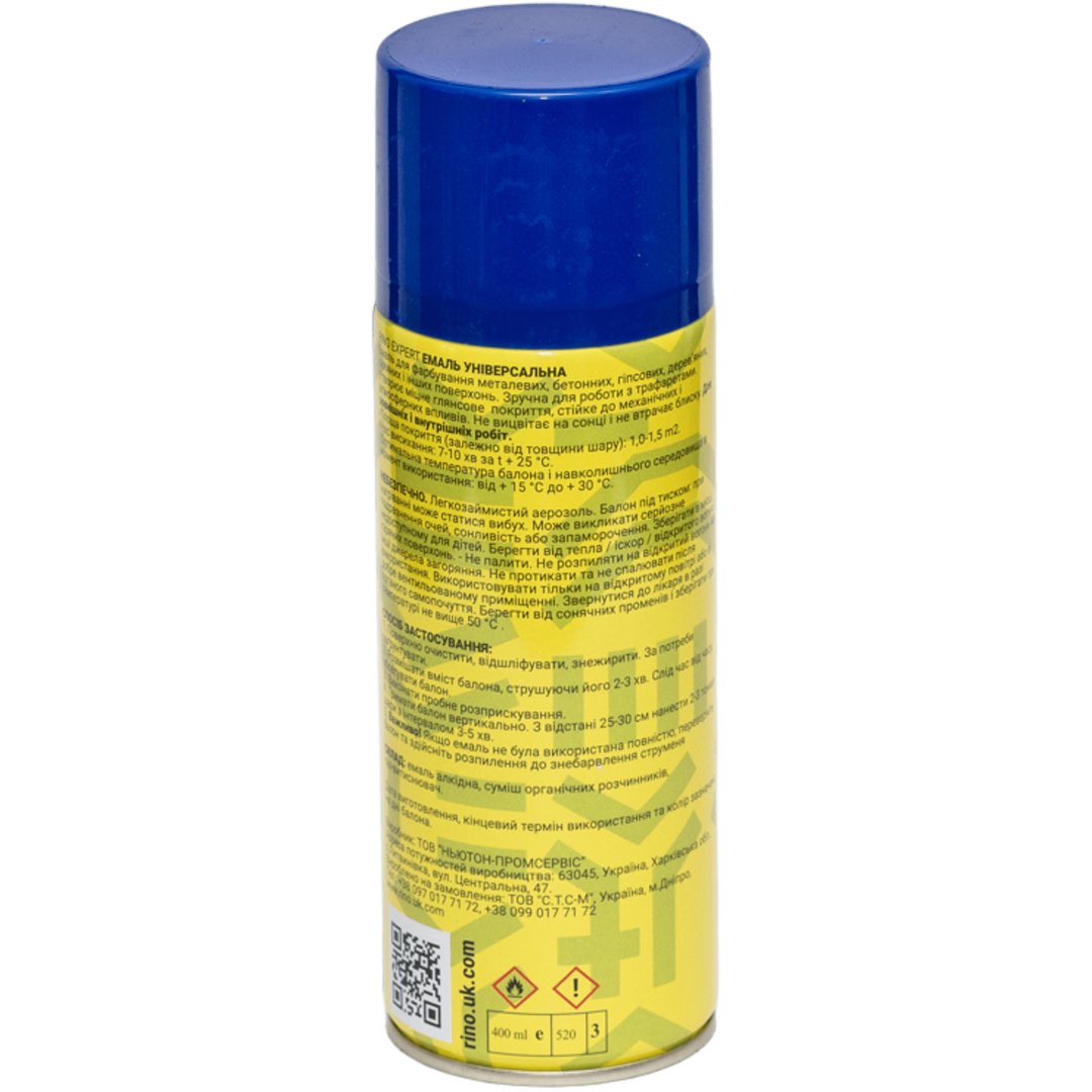 Основные характеристики Универсальная алкидная аэрозольная эмаль Rino Expert синяя RAL 5002 (RE-5002)