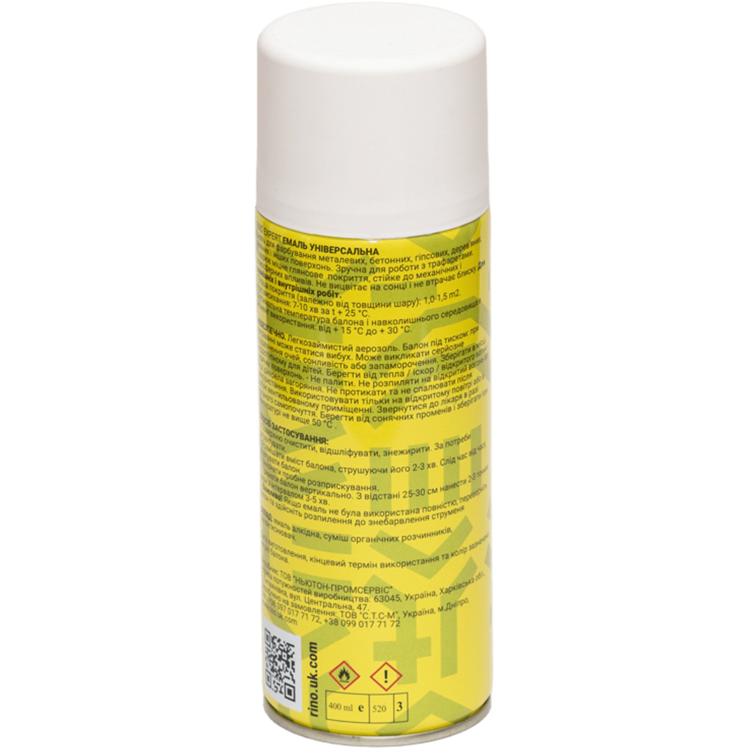 Основные характеристики Универсальная алкидная аэрозольная эмаль Rino Expert белая RAL 9010 (RE-9010)