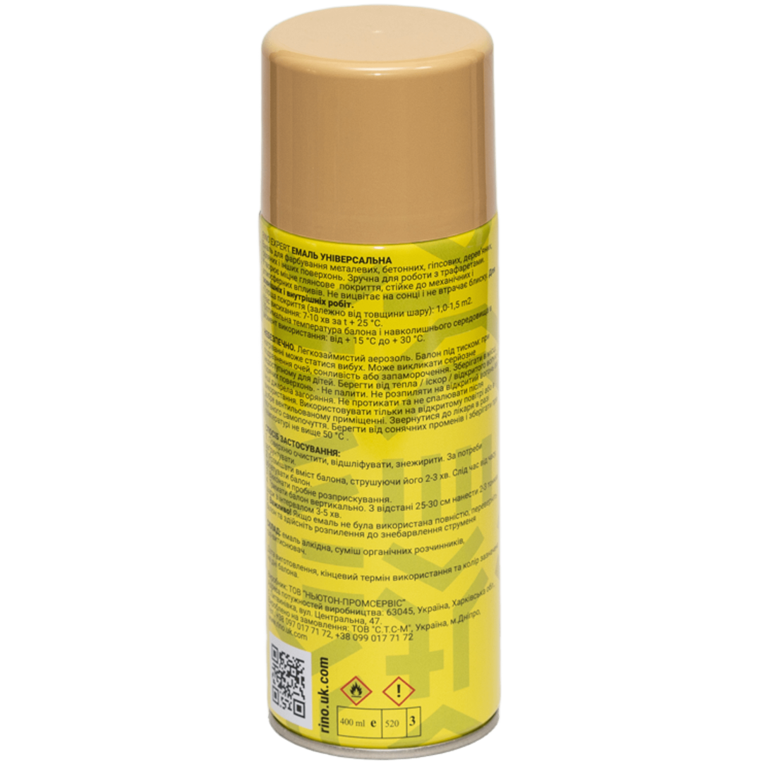 Основные характеристики Универсальная алкидная аэрозольная эмаль Rino Expert бежевая глянцевая RAL 1001 (RE-1001)