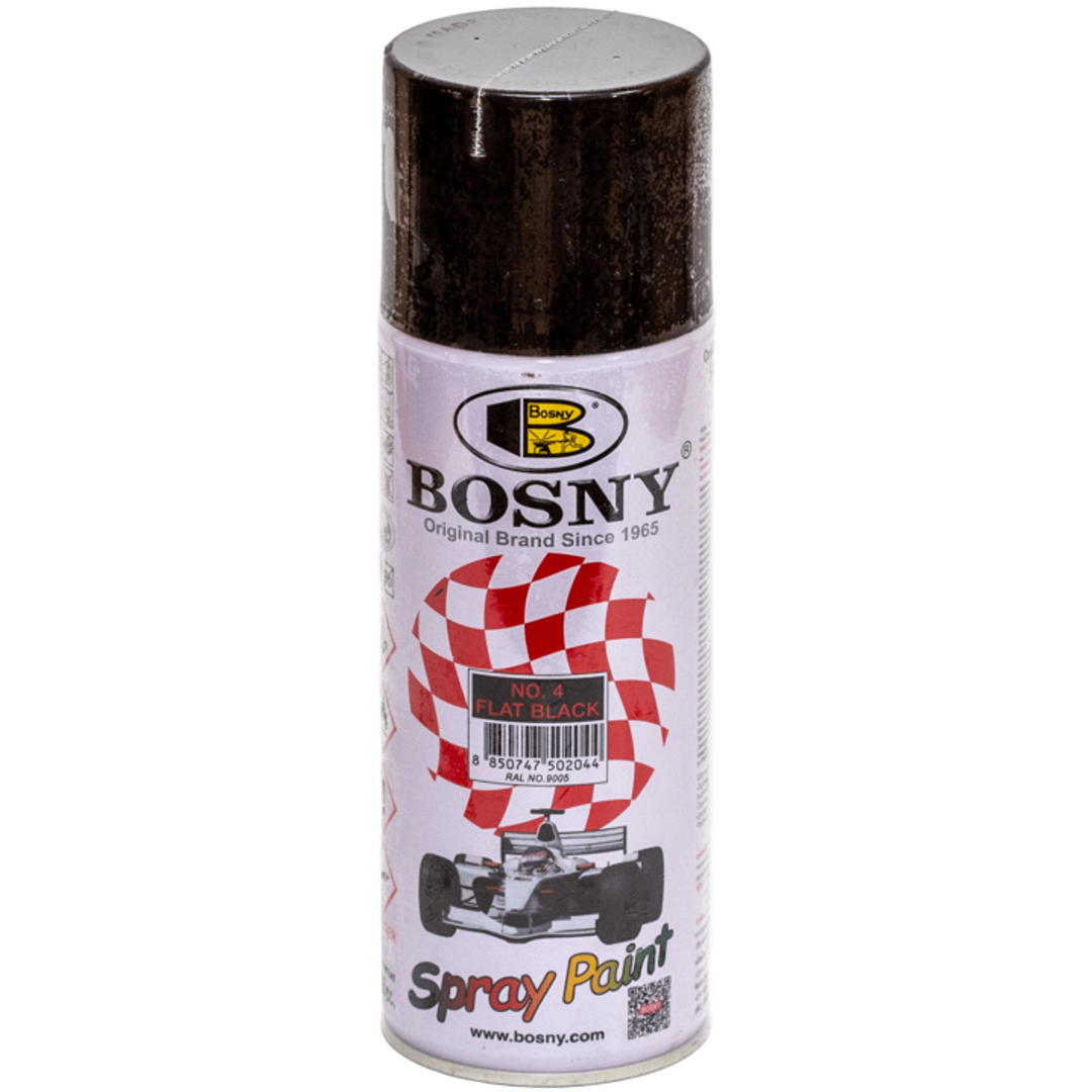 Описание Универсальная акриловая аэрозольная эмаль Bosny черный матовый (4) RAL 9005М